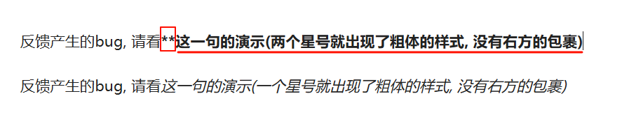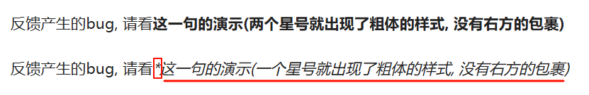 As long as one uses a single character * or two characters *, the inconsistency between the editing mode and the reading mode will occur.