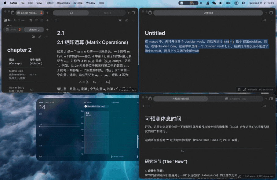 - On macOS, open multiple Obsidian vaults.