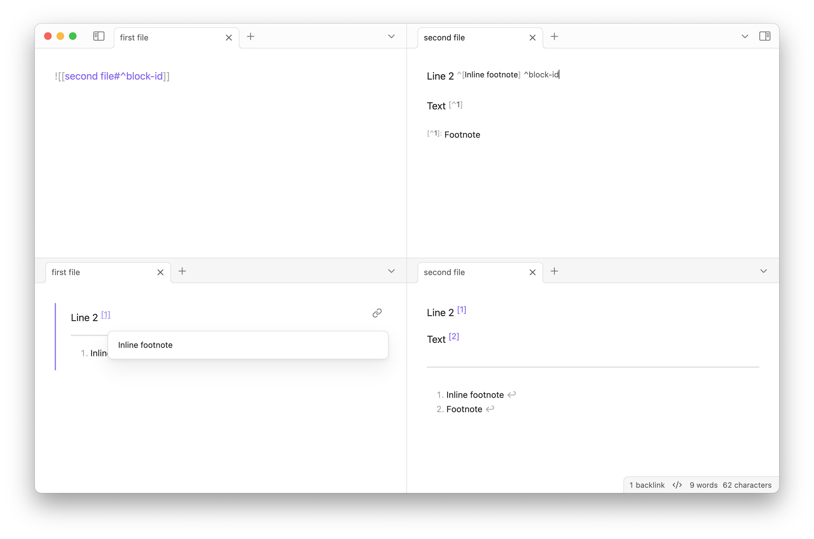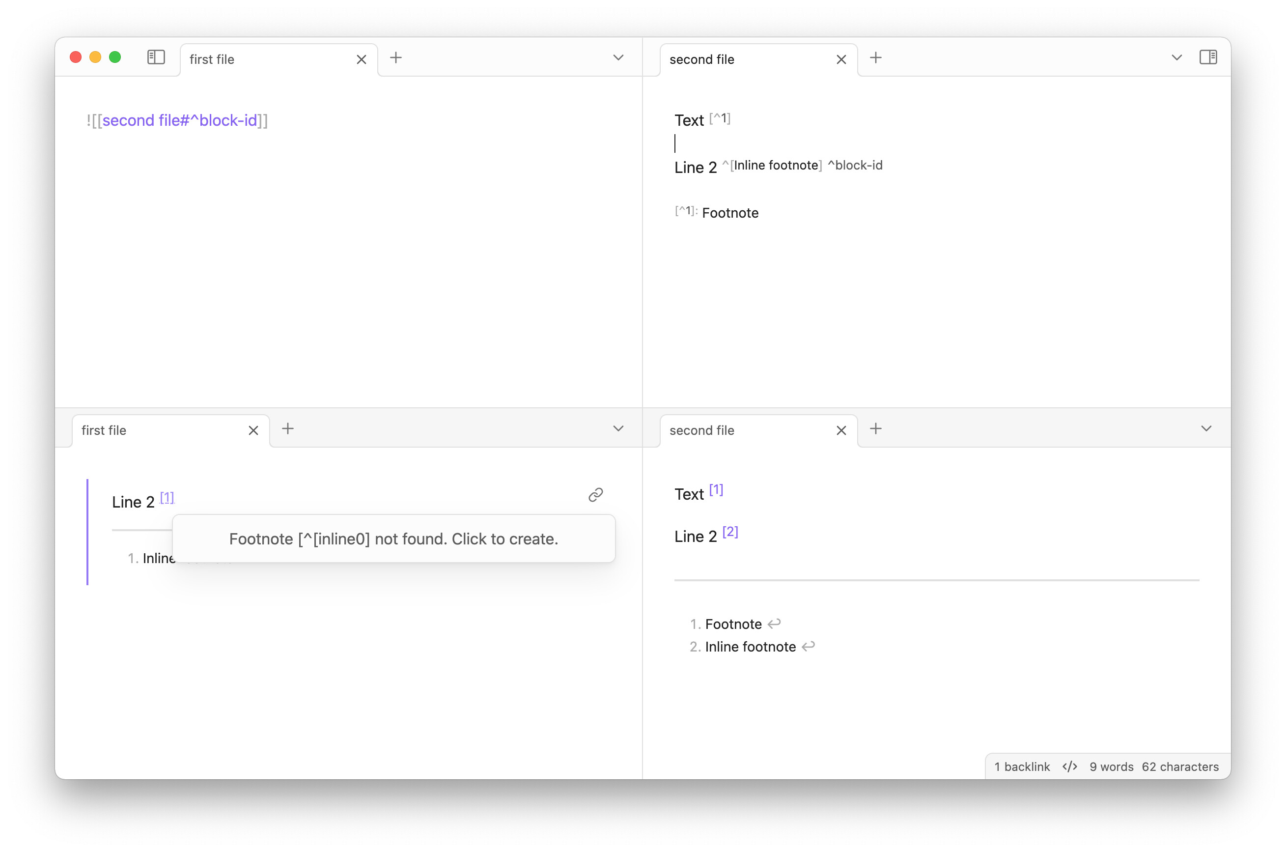 I'd like to collect the footnotes in some MD files by embedding the footnotes blocks.[^1]
