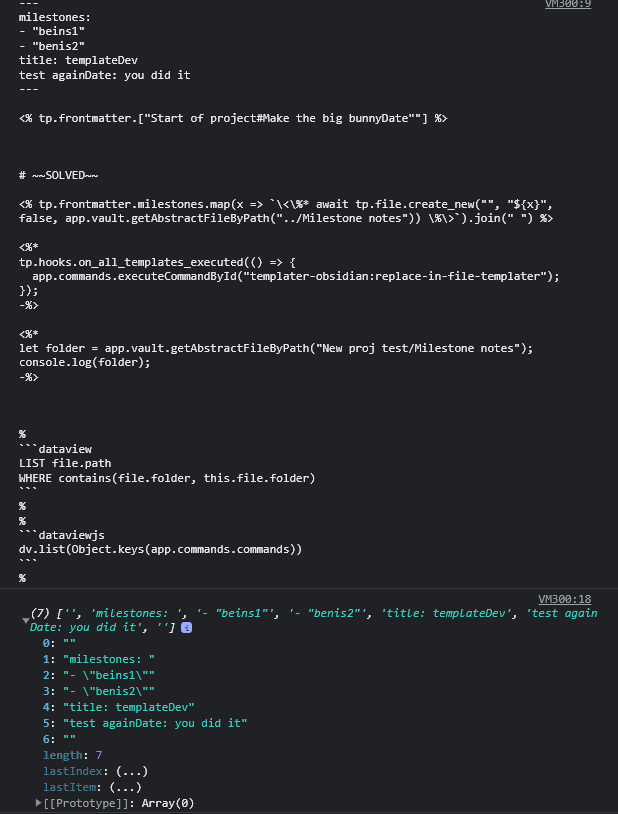 I’m trying to write a templater function(or script? idk) to write a line of frontmatter in another note. It’s for a projct tracker I’m working on. I want to generate new files based on the frontmatter of a “project setup” file (new file for each milestone delivery for easy notes and linking based on client feedback blah blah). The note creation works, but I can’t get it to write the frontmatter of another note into the frontmatter of the current note. I want to do this so I can call to a variable that’s created based on a universal structure of [“Milestone nameVariableModifier”] where VariableModifier is something like (“Date”, “Notes”, etc) in a span that is generated in a note creation template and I want the date field of the span to be auto populated with the date of my project setup doc due date (I declare all of the duedates ahead of time and I want the final text in the span to read data-date=‘2024-04-04’ or something similar). I thought I found something helpful for adding frontmatter in the templater docs but I can’t find it now. If you’re confused, I give a lot more details later.