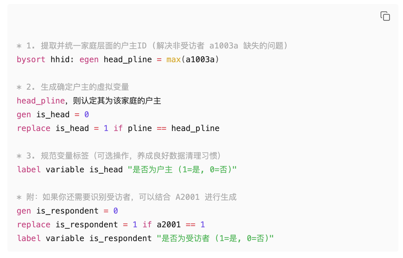 * 附:如果你还需要识别受访者,可以结合 A2001 进行生成