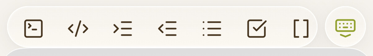 Ooh, a better way might be to use Ariehen’s way paired with the same thing applied to the mobile toolbar (and its keyboard dismissal button). But the navbar doesn’t appear on tablets, so they would need something when the keyboard is closed. Or maybe not, since if the keyboard is closed you’re probably not changing the file.