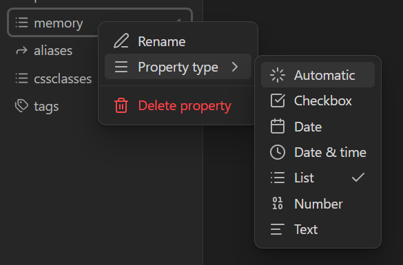 Enable Settings > Core plugins > Properties view.