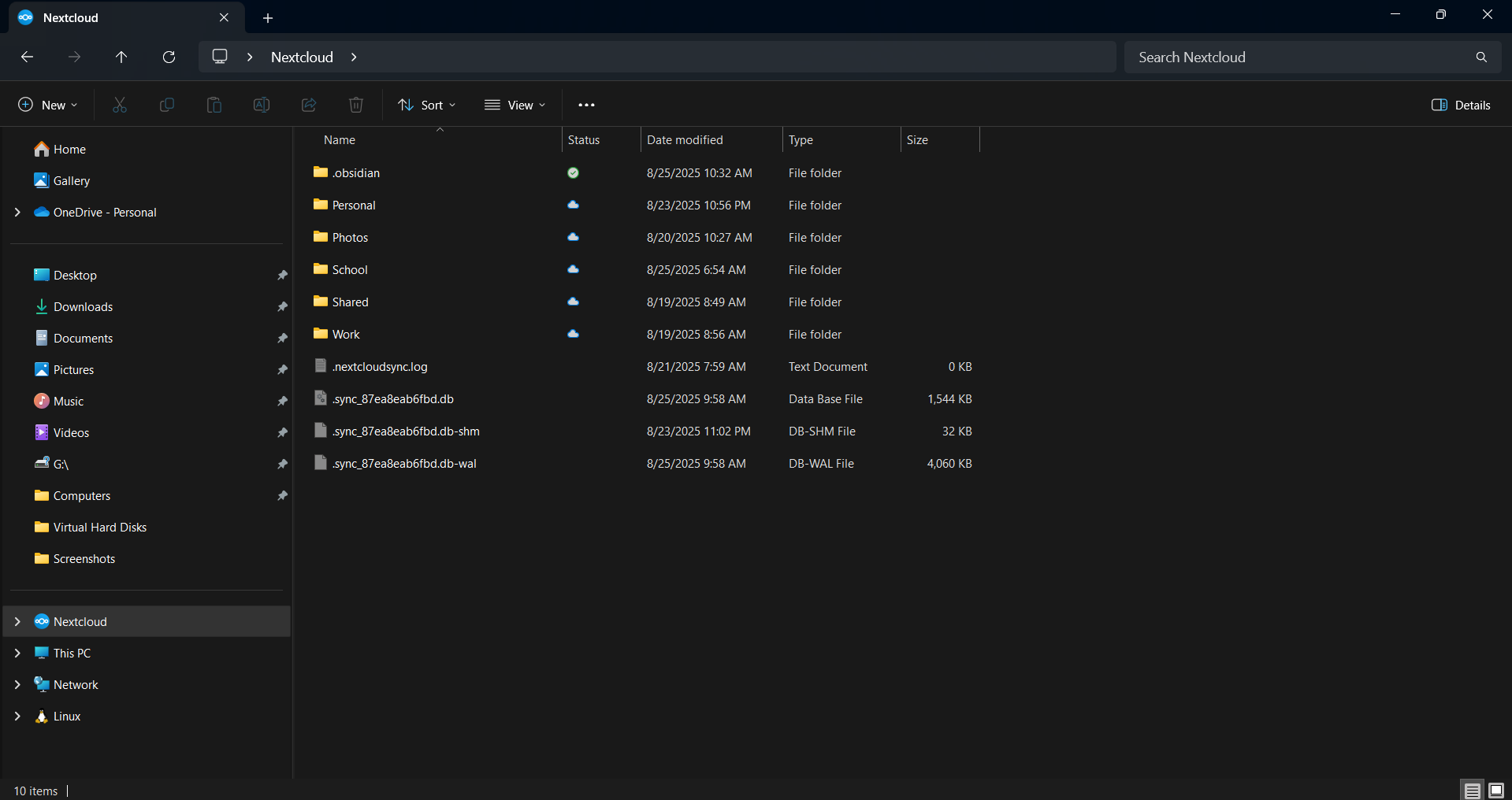 On my Windows desktop, I have my Obsidian vault pointed directly to my Nextcloud virtual folder (the one that exists in the bottom-left pane of Windows File explorer and is created via a Windows Shell Namespace Extension).