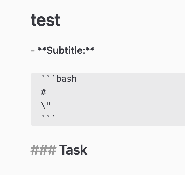 Maybe of note, sh code blocks where the contents include << (such as << EOF) trigger the same bug.