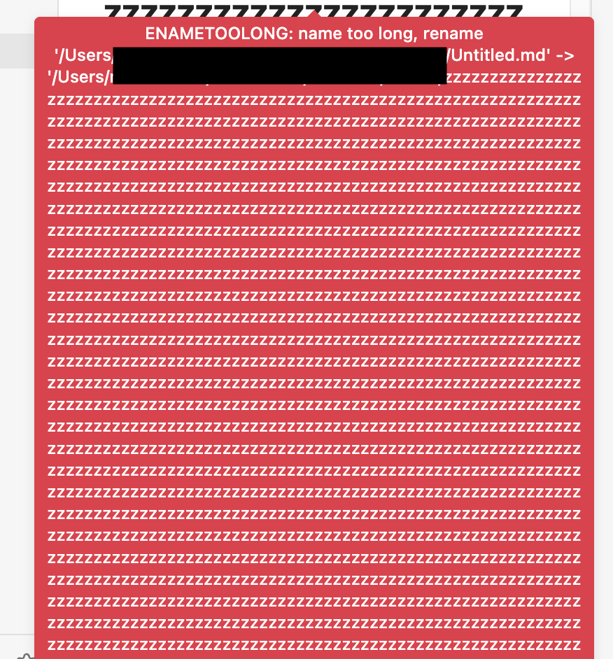 thanks for taking the time to duplicate the problem. now considering that this limitation is unresolvable as it relates to the foundations of obsidian’s filesystem. How can we suggest fixes, which could atleast be a warning when you hit 255chars , either it lets you continue writing, or it gives a wall effect limiting the writing. that is, instead of the current case when data is lost. or they could atleast convert the data written as a title, to normal text in the note.
