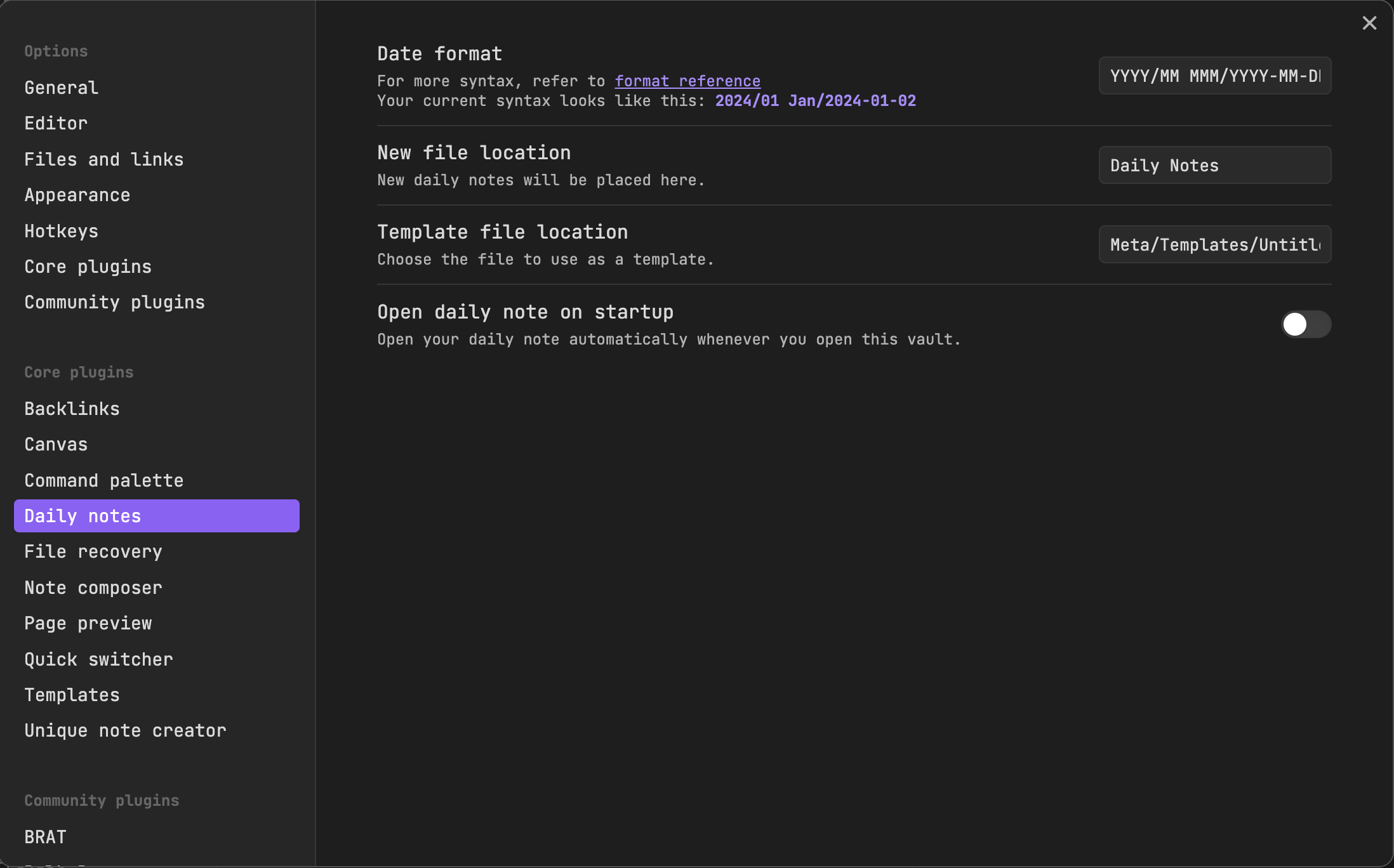 … Or you could use the Community plugin Periodic Notes (with or without the “complementary” Calendar plugin) if you need more than daily notes (weekly, monthly, etc… notes)