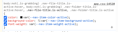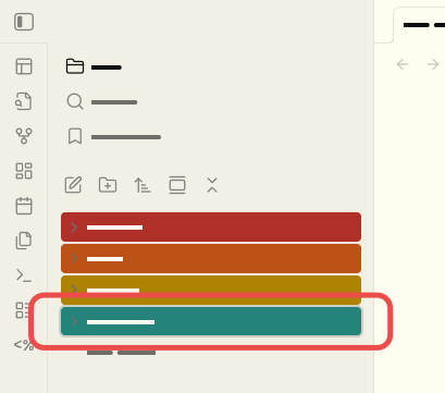 When using the “Files: Show File Explorer” my obsidian directory is shown with it’s custom colors, I defined those in snippets/obsidian.css with something like the following: