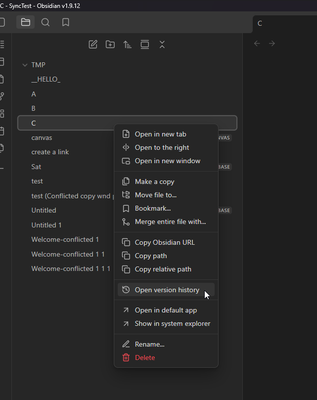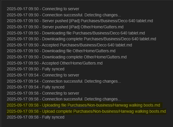Created a note and subsequently edited it later. Note that I have Obsidian Sync connected to one PC (Windows), one laptop (Windows) and one iPad.