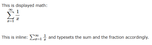 This is inline: $\sum_{x=1}^\infty\frac{1}{x}$ and typesets