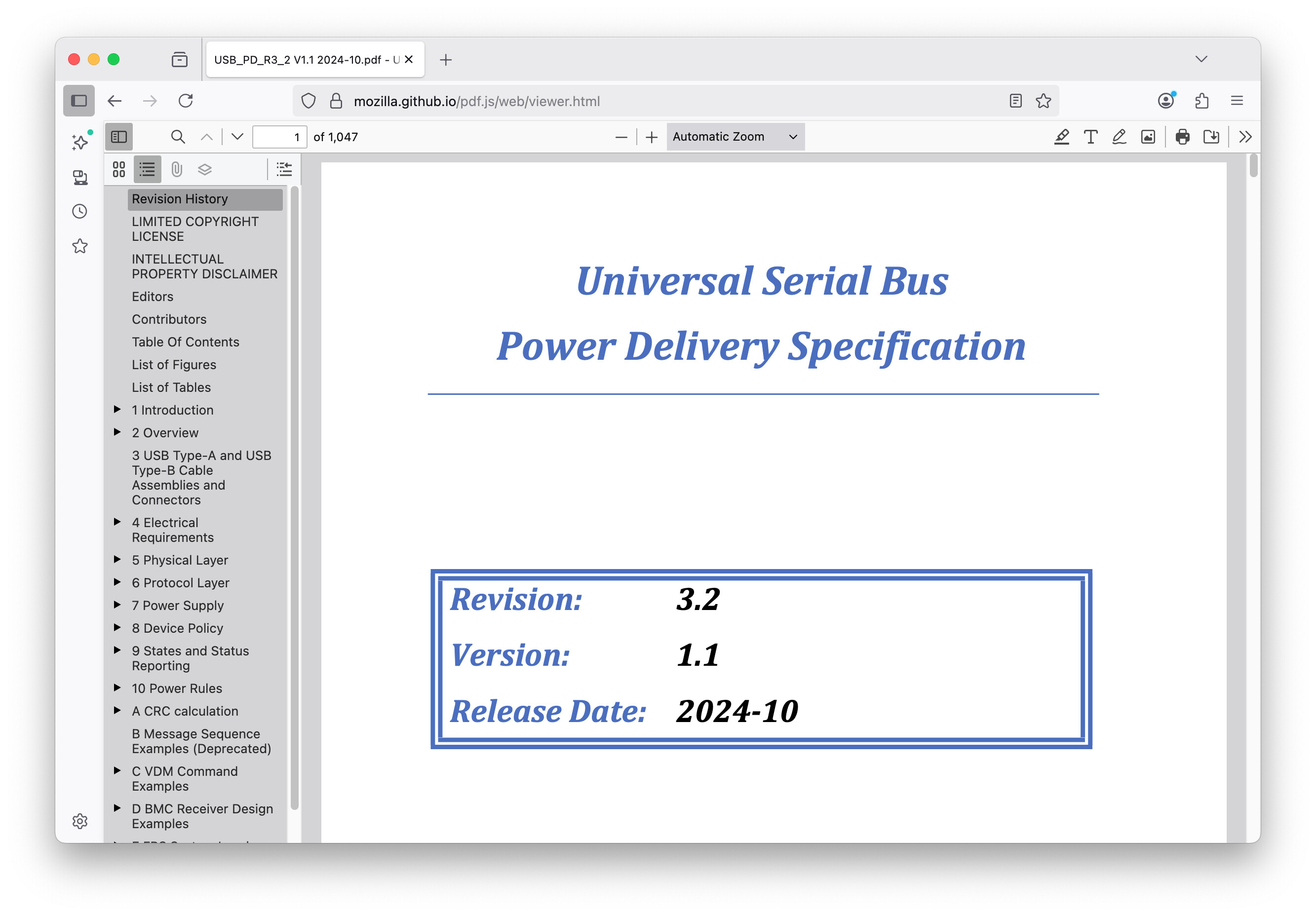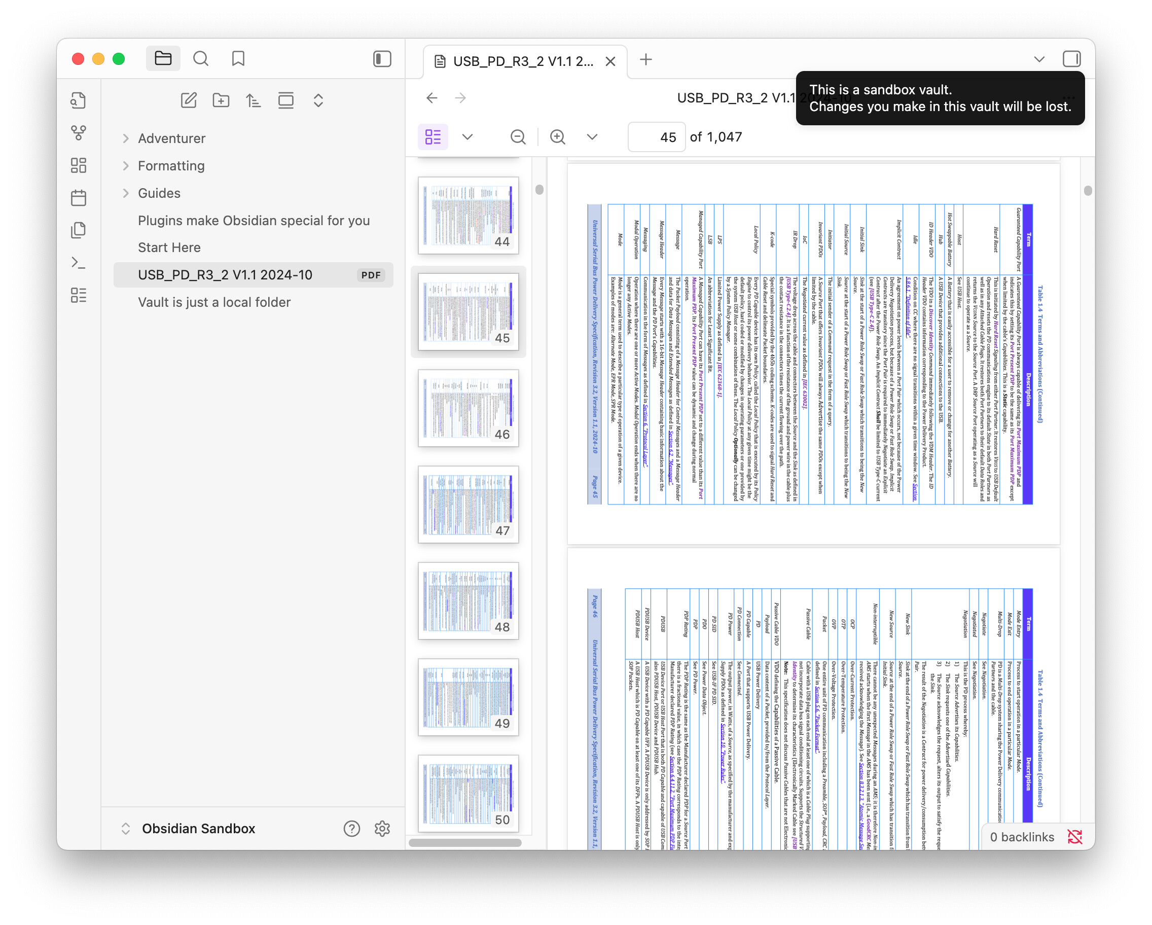 USB_PD_R3_2 V1.1 2024-10.pdffrom the archive and add to a sandbox vault. - Open the PDF and it is rotated clockwise 90°