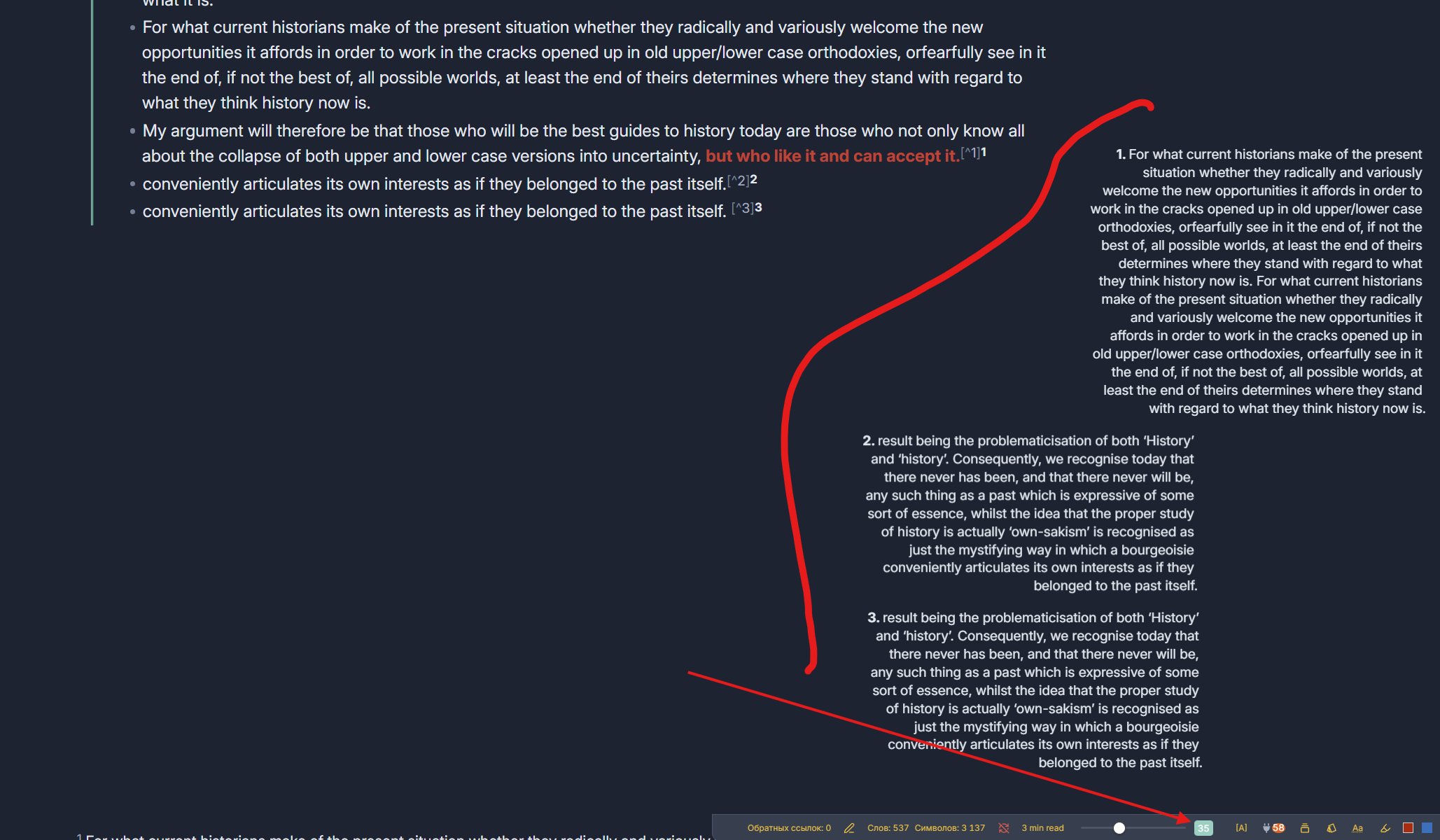 P.S. In addition, I miss the ability to click on the location of the sidenotes in the text and edit it “in place” in the area to the right or left, if necessary.