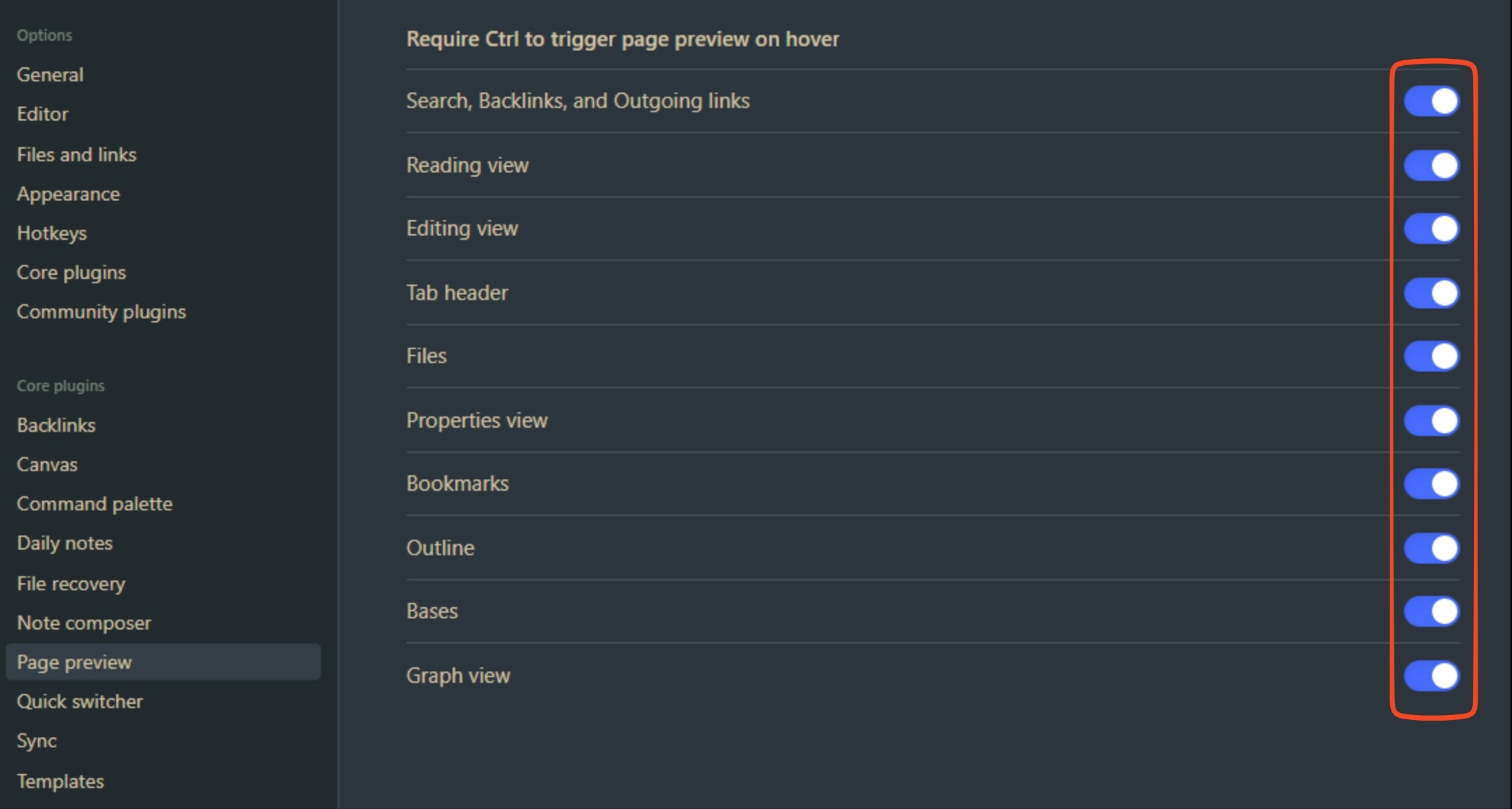 Thanks for the response. I am just trying to make it so I can preview hyperlinks to notes when I am hovering my mouse without holding down ctrl (am on windows).