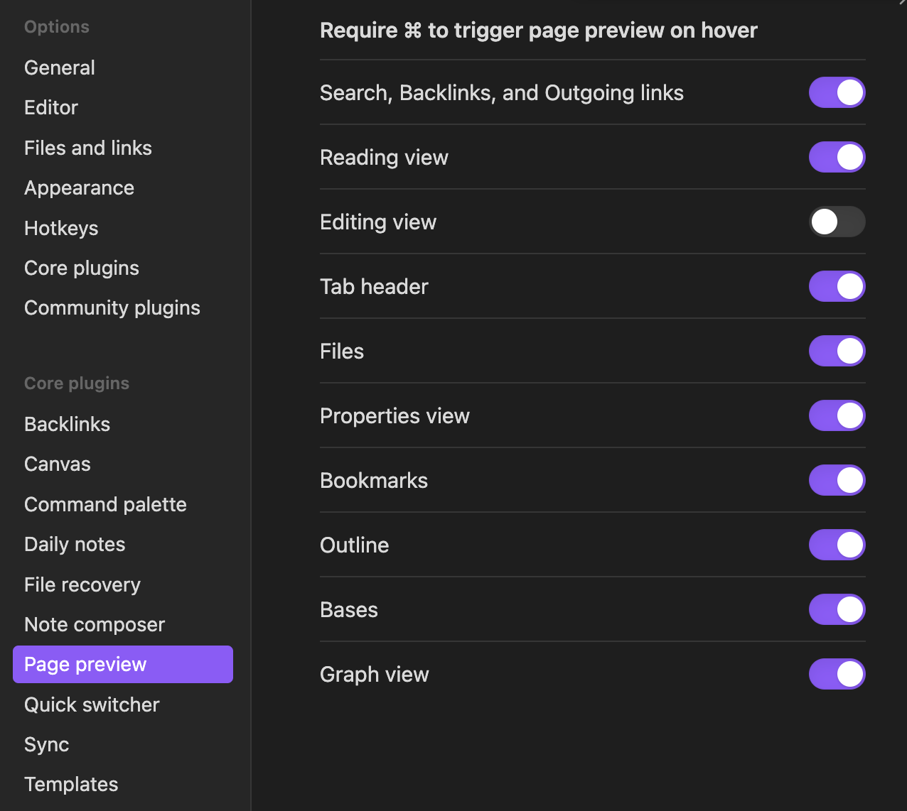 Please help, I am trying to do make it so I can preview pages without having to hold down control. Seemingly, this is an easy thing to resolve because the documentation says you can toggle the option in settings.