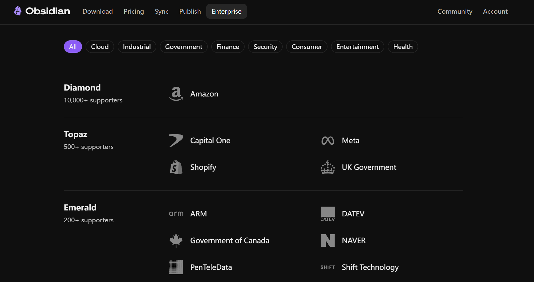 “Big customer list” (you can even see the UK government and Canadian government XD)