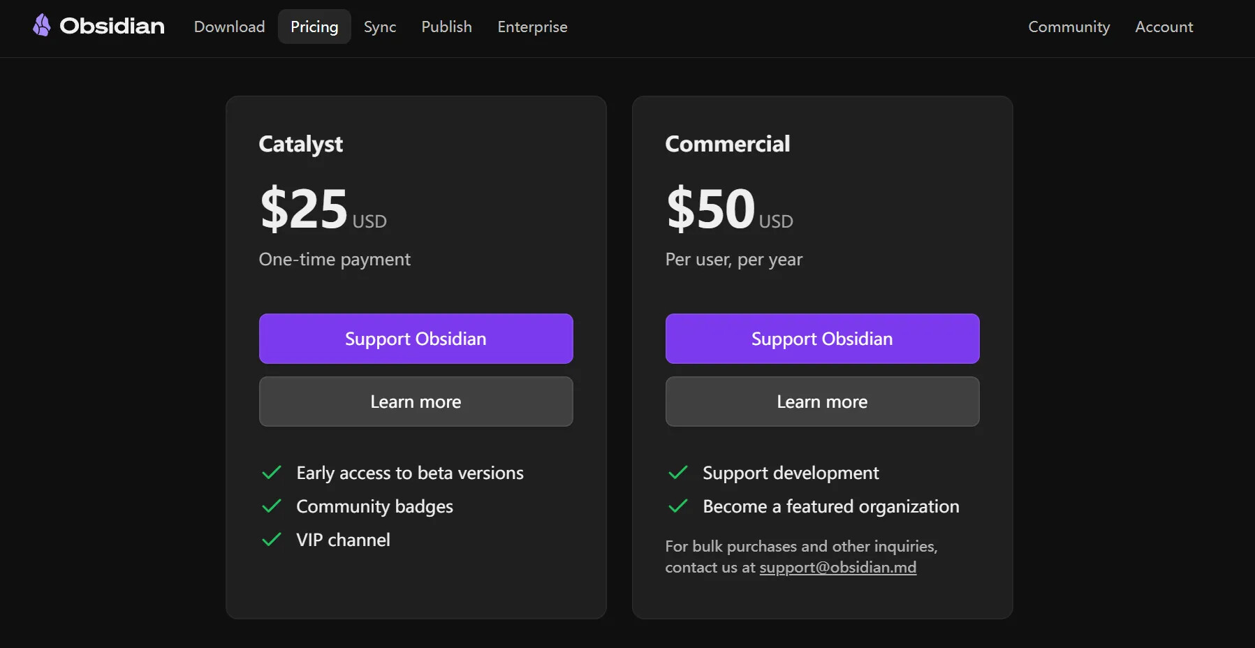 Obsidian is currently completely free for both regular and commercial users.