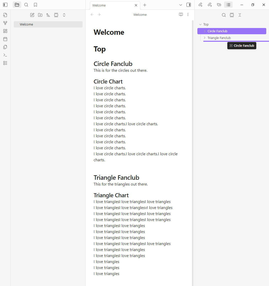 In the outline drag ## Circle Fanclub below ## Triangle Fanclub.