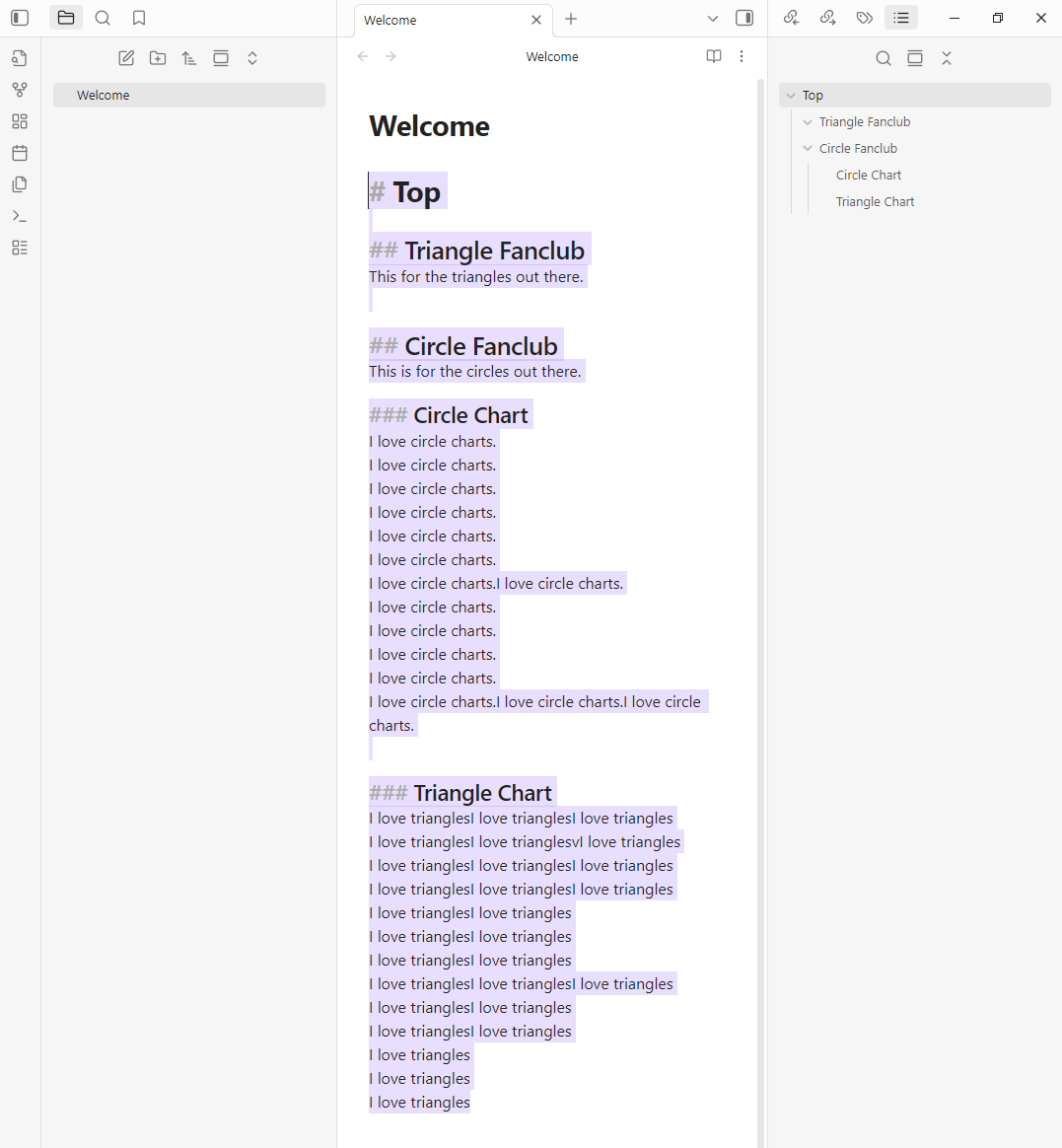 The result is that the ### Triangle Chart shifts into ## Circle Fanclub which seems like intended behavior as your dragging and dropping on the subheader itself so it make sense they combine. Like dragging and dropping a file into a folder.