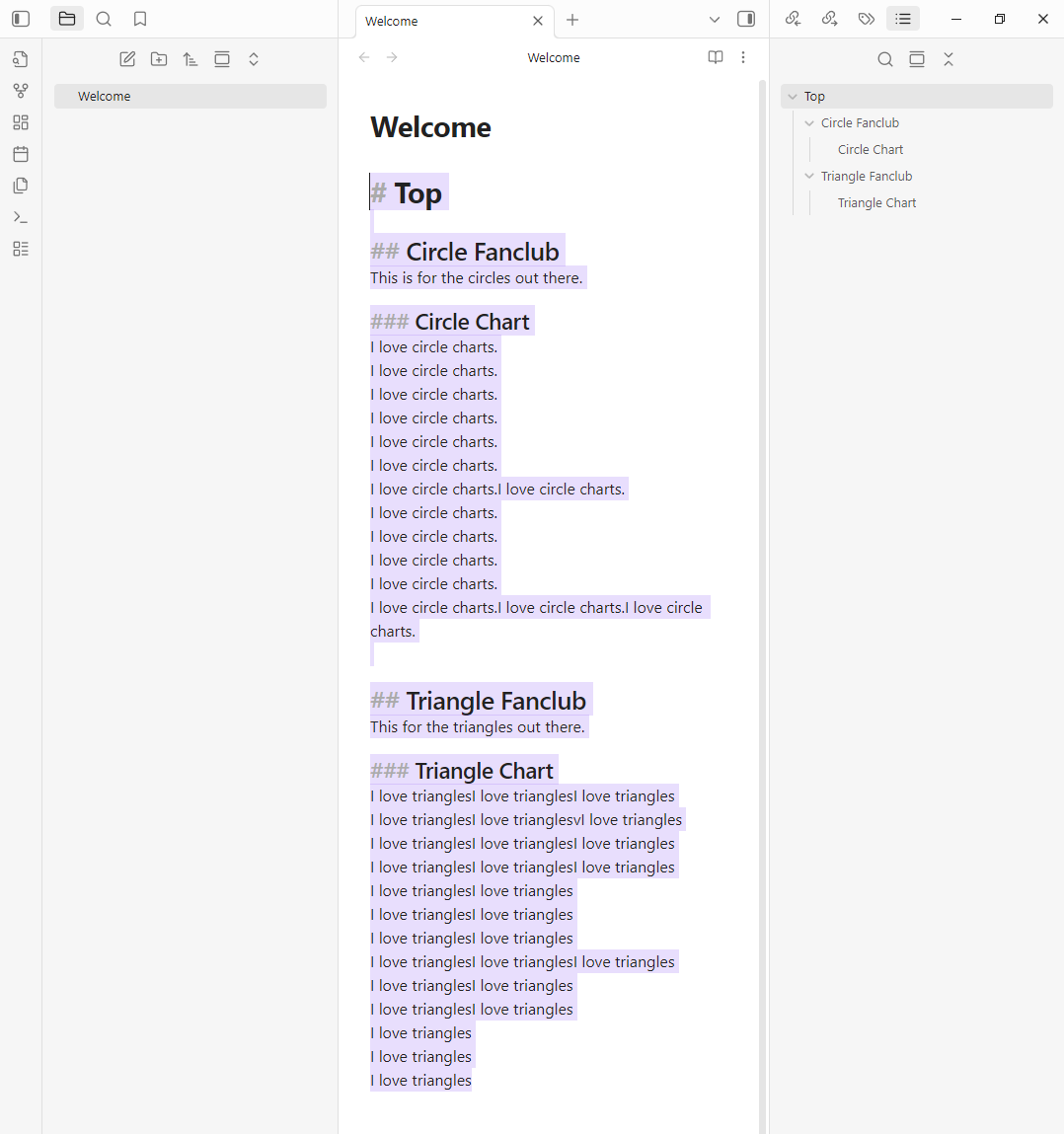 This is exactly the same result as the bug produces. So I think when trying to rearrange ## Circle Fanclub right below ## Triangle Fanclub the outline thinks you are actually dropping it inside the subheader, instead of below.