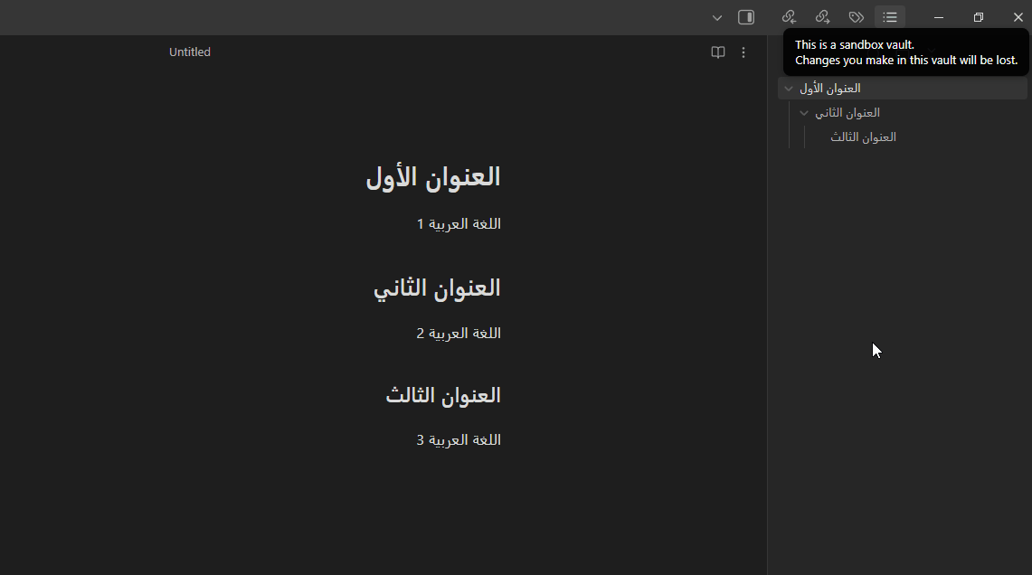 - Previewing an RTL Heading 1 works correctly — it and the following subheadings are right-aligned.
