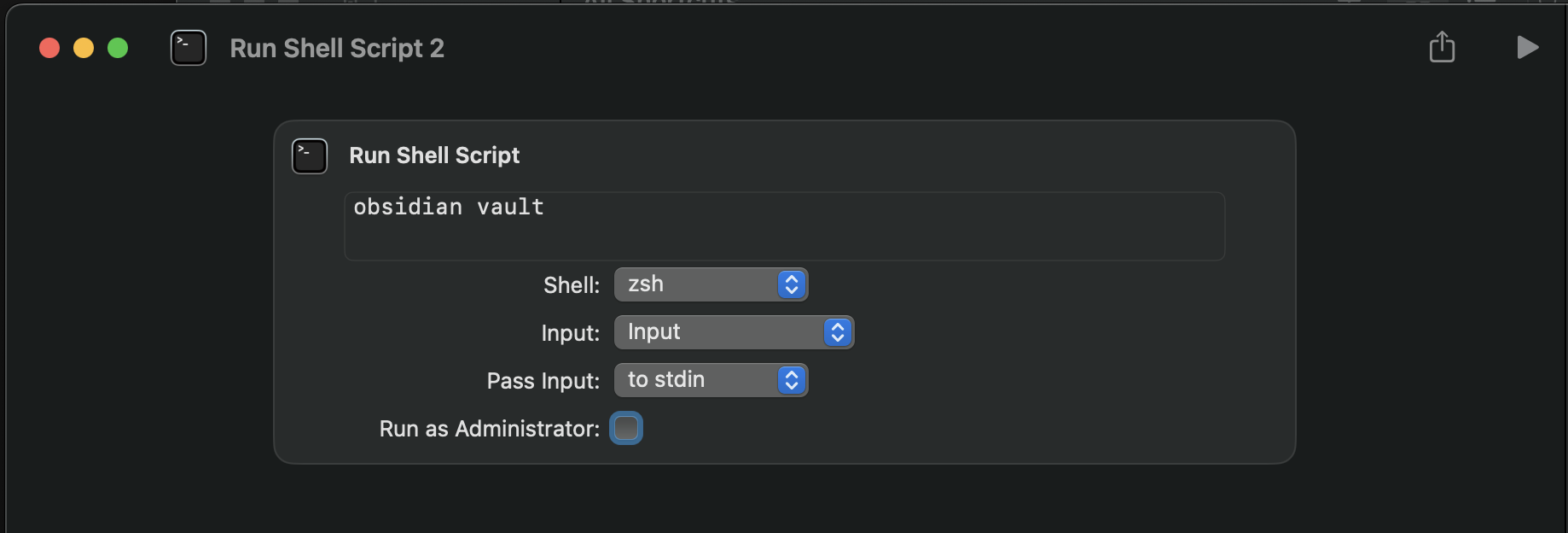 I am trying to run Obsidian CLI commands from the “Run Shell Script” action of a Shortcut, in Mac OS.