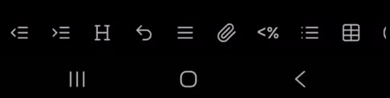 The editor shortcuts appear on top of the Android bottom bar (Home, Apps and Back buttons)