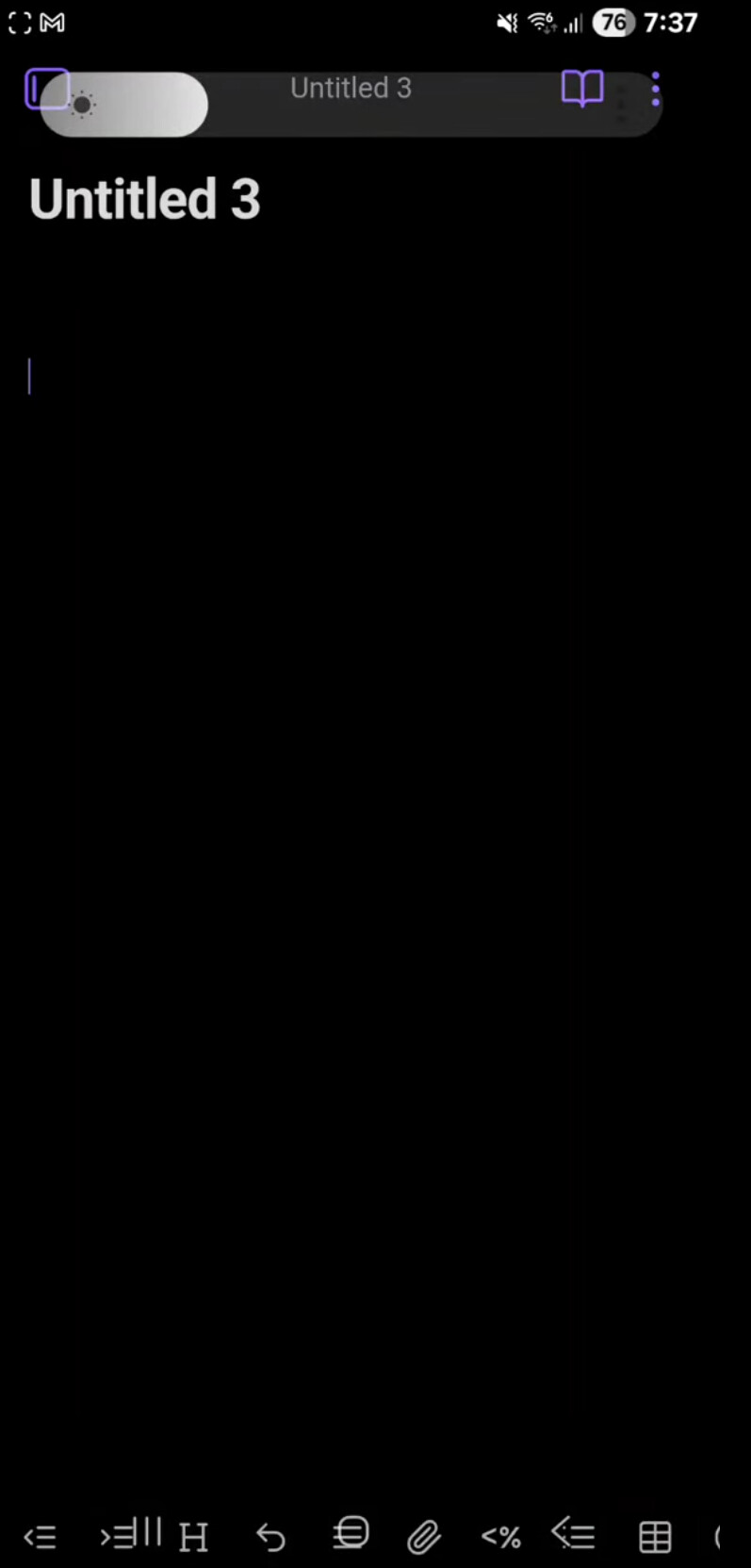 Using Obsidian for Android with a WIRED keyboard connected, default theme.