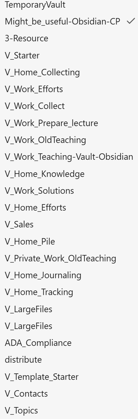 I have many vaults. I would like to be able to click on the vault name and have a search bar appear. If I have vaults Home_A Home_B Home_C Work_A Work_B and Work_C, then typing Home would only show the three vaults.