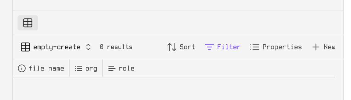 with a filter that will never have a result, but the “new” button makes it so that I can add a new person in the right folder from anywhere in my vault.