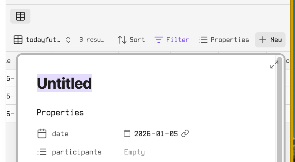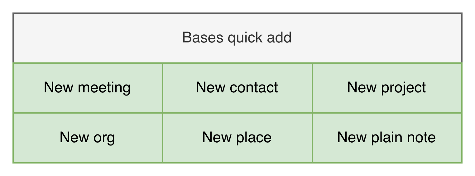 For creating new meetings I dragged a base view in the sidebar which lets me create a new meeting note for the current day.