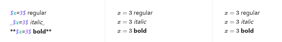 _Some italic text with "$x=3$"_