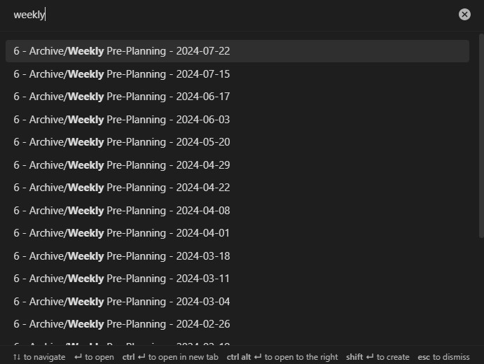 Currently, when you open the Quick Switcher it lists your most recently opened notes. That’s helpful and acknowledges that you’re likely to want to open them again soon. But if you type a keyword to filter for one of these recent notes, it’s likely to drop further down the list — because recency is not a factor when you search w/ Quick Switcher.
