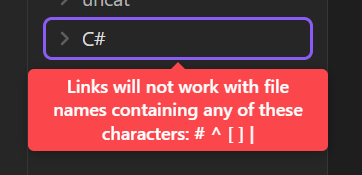 Obsidian doesn’t play will with the # character in paths. When Obsidian reached your #, it thought the file path was done. So all you got were the characters before it: “C.md”.