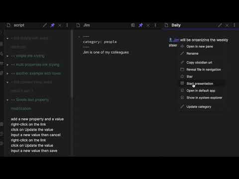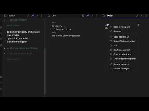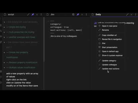 heads-up the plugin is not adding directly category and next-actions property. Instead, it will prefix them with data-link in order not to potentially conflict with other attribute management ssystem made by other plugins or Obsidian itself.