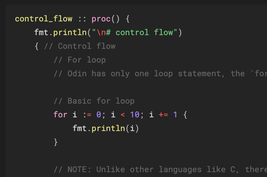 // Odin has only one loop statement, the `for` loop