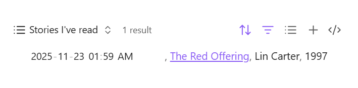Kind of looks like space for a null value or empty value. Can you paste your full base code here (in a code block) as well as the relevant YAML (copied from source mode) of one of the short-story notes?