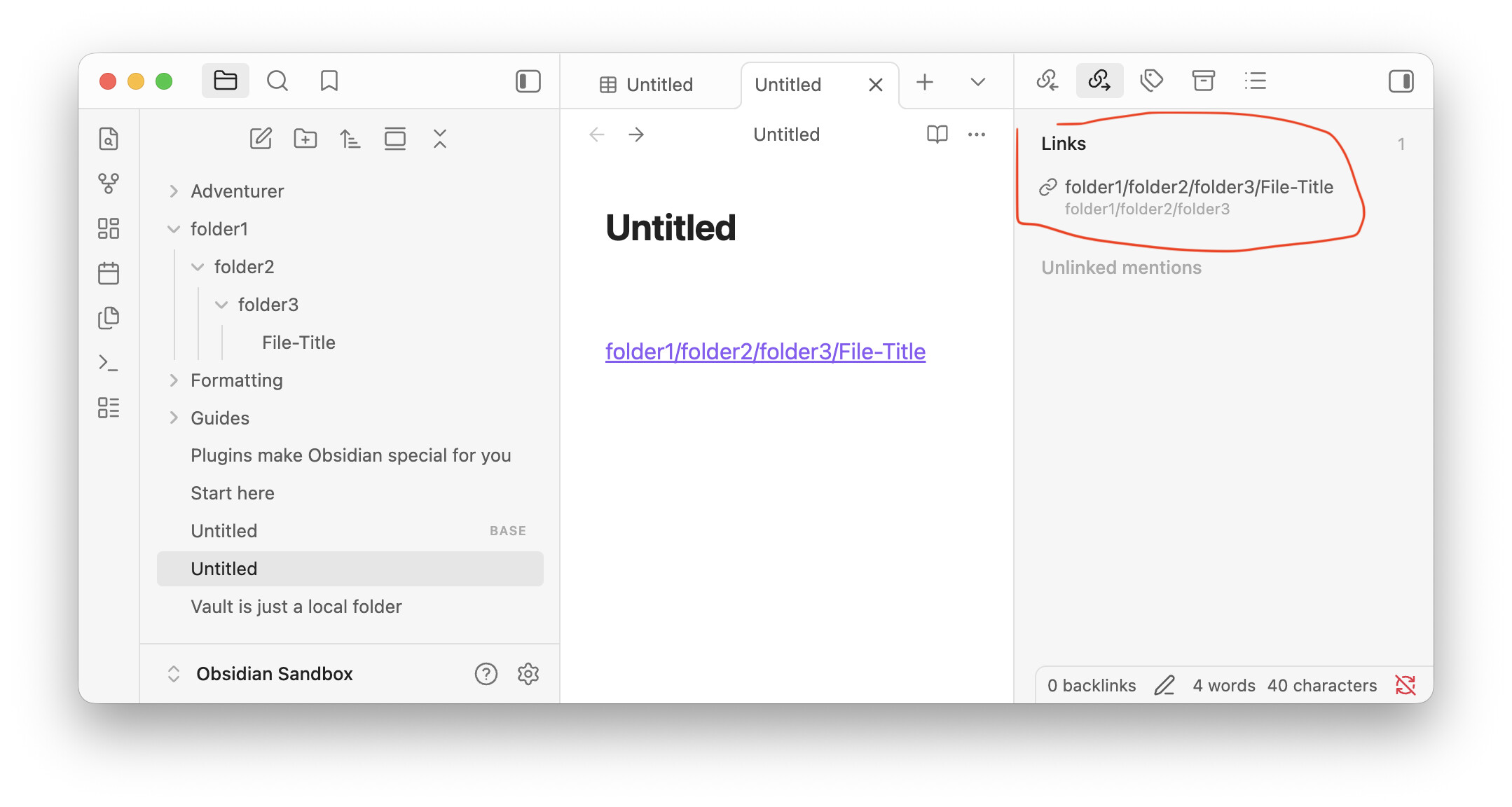Currently, in Backlinks or Outgoinglinks in left sidebar, when a file link is displayed, the first row shows the full path including the filename (e.g., folder1/folder2/folder3/File-Title). However, the second row already explicitly displays the directory path (folder1/folder2/folder3).