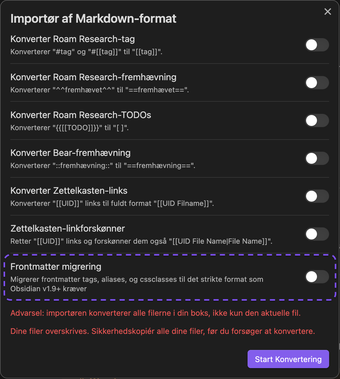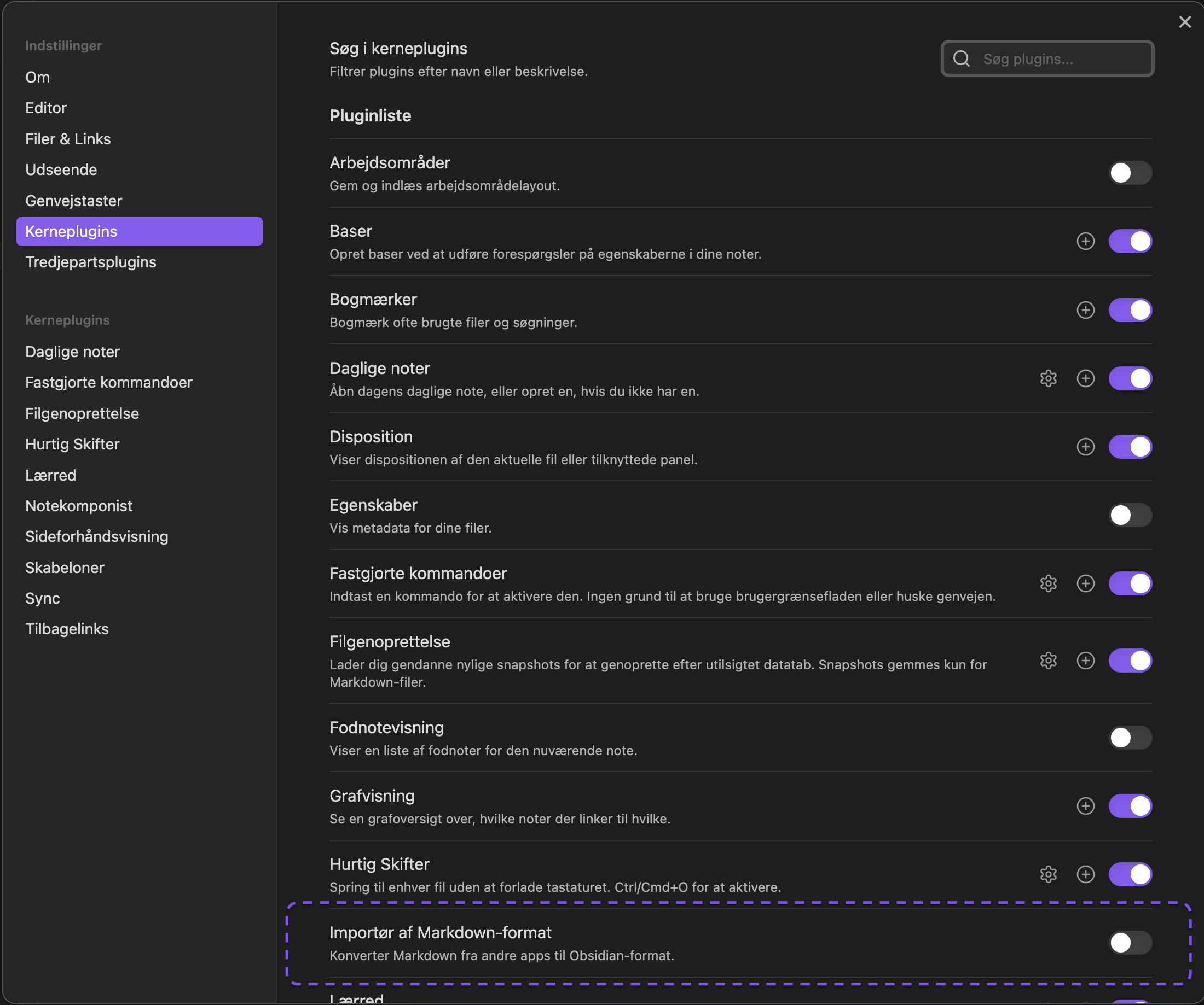 I am currently using the Danish language version of Obsidian and have updated to the latest version 1.9.12. However, I am unable to locate the “Format Converter” core plugin mentioned in the release notes.