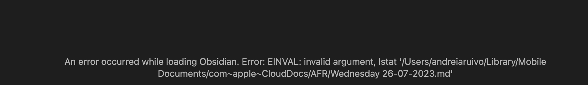 Vault Location - icloud. I moved it a few times, but the issue started when Obsidian launched an update a month (?) or so ago.
