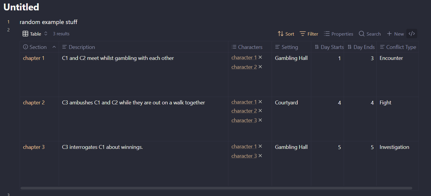 I’m creating a writer’s vault and showcasing sections (or chapters) as well as some general data about them (See screenshot below).