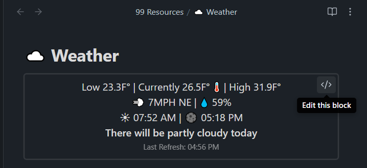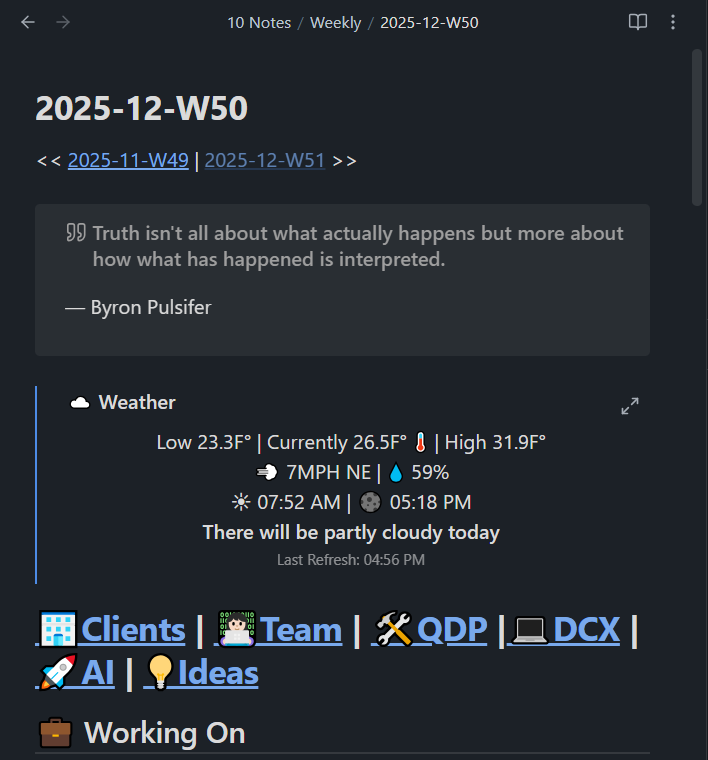 As ‘26 comes around I am winter cleaning my vault. I came across my tried and true Weather Widget and figured I would share it with you all as a way to give back to an awesome community.
