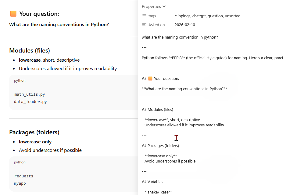 I’m trying to use the obsidian webclipper addon to download my conversations that I made with chatgpt. Example code generated by chatgpt is not being acquired by webclipper.